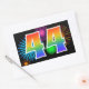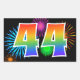Ce design d'autocollant amusant et vibrant présente un motif coloré inspiré des feux d'artifice de célébration, ainsi que le nombre "44" avec un motif de dégradé multicolore semblable à un arc-en-ciel, sur un fond de couleur noire. Des autocollants comme celui-ci pourraient peut-être être utilisés lors d'une fête célébrant le quarante-quatrième anniversaire de quelqu'un, ou peut-être pour le quarante-quatrième anniversaire de mariage d'un couple, ou pour un autre événement 44. [~Z0000324]