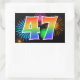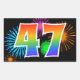 Ce design d'autocollant amusant et vibrant présente un motif inspiré de feux d'artifice de célébration colorés, ainsi que le nombre "47" avec un motif de dégradé de arc-en-ciel multicolore, sur un fond de couleur noire. Des autocollants comme celui-ci pourraient peut-être être utilisés lors d'une fête célébrant le quarante-septième anniversaire de quelqu'un, ou peut-être pour le quarante-septième anniversaire de mariage d'un couple, ou pour un autre événement 47. [~Z0000324]