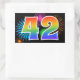Ce design d'autocollant amusant et vibrant présente un motif inspiré de feux d'artifice de célébration colorés, ainsi que le nombre "42" avec un motif de dégradé de arc-en-ciel multicolore, sur un fond de couleur noire. Des autocollants comme celui-ci pourraient être utilisés lors d'une fête pour célébrer le quarante-deuxième anniversaire de quelqu'un, ou peut-être pour le quarante-deuxième anniversaire de mariage d'un couple, ou pour un autre événement 42. [~Z0000324]