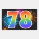 Ce design d'autocollant amusant et vibrant présente un motif coloré inspiré des feux d'artifice de célébration, ainsi que le nombre "78" ayant un motif de dégradé de arc-en-ciel multicolore, sur un fond de couleur noire. Des autocollants comme celui-ci pourraient peut-être être utilisés lors d'une fête célébrant le soixante-dix-huitième anniversaire de quelqu'un, ou peut-être pour un soixante-huitième anniversaire de mariage de couple, ou un autre événement 78. [~Z0000324]