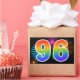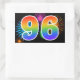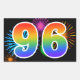 Ce design d'autocollant amusant et vibrant présente un motif inspiré de feux d'artifice de célébration colorés, ainsi que le nombre "96" ayant un motif de dégradé de arc-en-ciel multicolore, sur un fond de couleur noire. Des autocollants comme celui-ci pourraient être utilisés lors d'une fête célébrant le quatre-vingt-seizième anniversaire de quelqu'un, ou peut-être pour les quatre-vingt-seizièmes noces de mariage d'un couple, ou pour un autre événement 96. [~Z0000324]