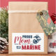 Cette conception célèbre la fierté et le soutien de la mère d’une Marine avec l’expression "Proud Mom of a Marine" en couleurs vives et audacieuses. La composition reflète l'amour, l'honneur et l'admiration pour le dévouement et le service du Corps des Marines des États-Unis.