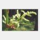 Les autocollants rectangulaires cool sont munis d'une photo accrocheuse de fleurs de rhubarbe. Idéal pour les jardiniers et ceux qui aiment racler ou cuire des tartes à la rhubarbe. Une épaisse tige verte de rhubarbe monte à travers le côté gauche du cadre. Deux branches avec des tiges de minuscules fleurs jaune-vert pâle inclinent en diagonale vers la droite tandis que deux tiges courtes de bourgeons attachées à la tige principale pointe vers la gauche du cadre pour un bon équilibre de composition. Une feuille de papeterie brune entoure les articulations des branches minces à la tige principale. Une autre feuille brun rougeâtre est suspendue au sommet du cadre le long de la tige. Un observateur attentif remarquera que les troncs d'arbre ombragés dans le tiers supérieur de l'arrière - plan sont tous inclinés de sorte que le plante de rhubarbe apparaisse verticalement. Les deux tiers inférieurs de l'arrière - plan contiennent principalement des fougères et des perwinkle, un ensemble de verdures à texture indistincte. Une faible profondeur de champ et la lumière du soleil mettent en évidence les tiges de rhubarbe fleuries au premier plan de la photo couleur. Photo numérique, couleur. Copyright © 2008 Claire E. Skinner. Tous droits réservés.