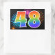 Ce design autocollant amusant et dynamique présente un motif coloré inspiré par les feux d'artifice, ainsi que le numéro "48" avec un motif dégradé multicolore inspiré arc-en-ciel, sur un arrière - plan de couleur noire. Des autocollants comme celui-ci peuvent être offerts en cadeau pour célébrer le quarante-huitième anniversaire de quelqu’un, ou peut-être pour célébrer le quarante-huitième anniversaire de mariage d’un couple, ou un autre 48e événement. [~Z0000324]