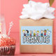 Découvrez cette série du gang des cacahuètes ensemble, avec Schroeder et Lucy, Linus avec sa couverture, Charlie Brown et sa soeur Sally, Pigpen, Franklin regardant la danse Snoopy, et Woodstock volant au-dessus.