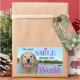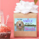 Cette conception comprend une photographie d'un chien de repérage doré souriant entouré de ciels bleus et d'eau. La citation dit : "Laisse ton sourire changer le monde."