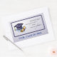 Une image d'un casquette diplômé et d'un diplôme avec une bordure de marine sur un arrière - plan gris-bleu doux est préférable à donner à quiconque célèbre l'obtention du diplôme. Parfait pour les diplômés et se souvenir du passé en entrant dans la nouvelle étape de la vie.