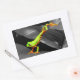 Grenouille à chaux acrobatique vert avec rayures orange et noir sur le ventre, on dirait qu’il fait un stand à main. Amphibien bondissant très coloré sur un arrière - plan noir et blanc.