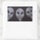 Un dessin au crayon couleur de trois ET gris Aliens contre un ciel noir étoilé orne cet autocollant !