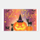 Un design hilarant pour Halloween ; citrouille souriant, chats noirs, et chauves-souris volantes avec des étoiles fluorescentes derrière.