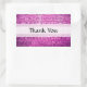 Ensemble d'autocollants "Merci" de rectangle violet avec des hiéroglyphes anciens gravés sur pierre. Les mots "Merci" sont personnalisables !