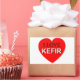 J'adore le kefir. Le kéfir est une boisson probiotique naturelle à base de lait. Image de coeur rouge avec texte.