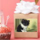 Stickers avec un chaton tuxedo chéri ! Ce chaton noir et blanc pose à couteaux verts et rouges. Un cadeau merveilleux pour les amoureux de les chats et les amateurs d'art victorien !