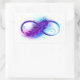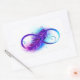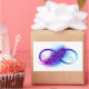 Infinity symbole with a beautiful feather painted in purple and blue bright colors on white background