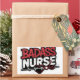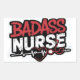 Cet autocollant dynamique et audacieux présente l'expression "BADASS NURSE" en grandes lettres accrocheuses. Le mot "BADASS" est écrit en rouge avec une texture en détresse, tandis que "NURSE" est en blanc avec une texture similaire.