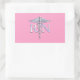 Sticker Rectangulaire Infirmière inscrite Silver Caduceus Décor rose cla