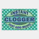 "Instant Clogger : Il Suffit D'Ajouter De La Musique." Ce joli autocollant rectangulaire pour danseurs en colimaçon présente une bannière ovale dans les tons bleu, vert et blanc avec des notes de musique et des rayures. L'arrière - plan est bleu-vert avec des pois blancs. C'est un joli autocollant pour le fan de clog. Voir les variations et les motifs de colmatage plus originaux sur notre lien ClogDance shop!