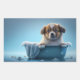 Sticker Rectangulaire Joli chiot dans Bain Bleu
