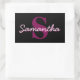 Sticker Rectangulaire Joli script de monogramme rose et noir personnalis