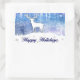 Sticker Rectangulaire Joyeuses Vacances Scène de Cerfs