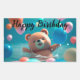Sticker Rectangulaire Joyeux Anniversaire avec Teddy Bear et Ballons