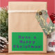 Un simple autocollant pour souhaiter un Joyeux Noël à quelqu'un ! en lettres violettes sur fond vert vif.