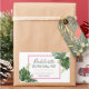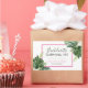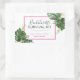 Collez ces autocollants amusants sur une boîte remplie de bonnes choses pour la récupération de gueule de bois pour le week-end de l'enterrement de vie de jeune fille. Autocollant Kit de Survie Enterrement de Vie de Jeune Fille avec des feuilles tropicales. Personnalisez avec le nom de la mariée et le hashtag.
