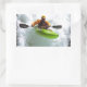 STICKER RECTANGULAIRE KYAKING EN EAU BLANCHE.