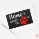 Pensez à la citation "La maison est où le coeur est" - cet ensemble d'autocollants rectangle a les mots "La maison est où l'image de l'empreinte de patte est", avec l'image de l'empreinte de patte en rouge, représentant le "coeur". Le cadeau idéal pour les amoureux des animaux de compagnie.