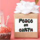 Graphique à thème de Noël mignon et significatif avec des signes de paix rouge et vert accentué dans chaque lettre. Wishing Peace on Earth... à Noël et tous les jours.