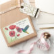 Un colibri se nourrit d'une fleur de cosmos rouge. Cette aquarelle offre joie et paix en faisant savoir à quelqu'un que vous pensez d'eux et en remerciant Dieu pour eux.