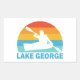 "Connu comme la Reine des lacs américains avec ses 109 milles de rivage et plus de 300 îles, le lac George est un paradis de vacances offrant des sports nautiques, de la randonnée, du vélo et des aventures en plein air sans fin. Ce design vintage a des couleurs rétro avec des arbres et un arc-en-ciel."