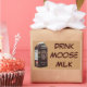 Une brique de lait de la ferme laitière Matanuska Moose Milk de renommée mondiale et entièrement mythique à Willow Alaska; pas trop loin d'Anchorage. Le slogan "Buvez du lait d'orignal" apparaît également. L'image du logo est ornée d'une milkmaid qui traite la Matilda, la première orignale laitière de la ferme. Croyez-le ou non, il y a des laiteries d'orignaux ; un petit nombre en Russie et un en Suède. Le lait d'orignal est cultivé commercialement en Russie. Un veau d'orignal né à la ferme est retiré de sa mère dans les 2-3 heures suivant la naissance et est élevé par des gens. Il est d'abord nourri en bouteille avec un substitut de lait, puis nourri à partir d'un seau. Les animaux s'impriment et deviennent attachés aux humains. Le lait est riche en matières grasses (10%) et solides (21,5%), selon les données recueillies sur l'orignal russe ; les recherches sur le lait d'orignal américain sont dans un état moins avancé qu'en Russie, mais semblent indiquer que les concentrations d'orignaux américains sont encore plus élevées dans leur lait. On dit que le lait d'orignal est un peu salé et amer, avec un soupçon d'aiguilles de pin ou d'épinette. Le lait d'orignal est cultivé commercialement en Russie. Un veau d'orignal né à la ferme est retiré de sa mère dans les 2-3 heures suivant la naissance et est élevé par des gens. Il est d'abord nourri en bouteille avec un substitut de lait, puis nourri à partir d'un seau. Les animaux s'impriment et deviennent attachés aux humains. Comme pour le bétail laitier, les veaux sont retirés de leur mère après un court laps de temps.Les Russes disent que l'orignal reconnait bientôt les sirènes de lait comme leur substitut comme ses veaux de remplacement. À ce stade, ils sont rejetés dans la forêt, mais ils visitent la ferme tous les jours pour être traités pendant la période de lactation (généralement, jusqu'à septembre ou octobre). En hiver, les animaux se promènent librement dans la forêt environnante. Mais en général, ils ne s'éloignent pas trop, mais passent une grande partie de leur temps dans les boisés voisins où les arbres sont coupés, se nourrissant des sous-produits de l'exploitation du bois. Et ils connaissent la ferme comme l'endroit pour une ration quotidienne de farine d'avoine, et comme un endroit sûr pour donner naissance à leurs jeunes. Un sanitorium russe sert du lait d'orignal aux résidents dans la conviction qu'il les aide à se remettre de la maladie ou à gérer les maladies chroniques plus efficacement. Des chercheurs russes ont recommandé que le lait d'orignal soit utilisé pour prévenir les maladies gastro-entérologiques chez les enfants. La ferme Elk (Oie sont appelés Elk in Europe) House (Älgens Hus) à Bjurholm, en Suède, est considéré comme le seul producteur mondial de fromage d'orignal. Le fromage se vend environ 500 dollars la livre. Le restaurant de l'Algens Hus sert des plats à base de fromage d'orignal. Fromage simple avec du pain ou des biscuits, ou mieux encore, mousse d'orignal congelé. Mieux servi avec des framboises.