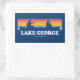 Connu sous le nom de Reine des lacs américains avec ses 109 miles de rivage et plus de 300 îles, le lac George est un paradis de vacances offrant des sports nautiques, de la randonnée, du vélo et des aventures en plein air sans fin. Ce design vintage présente des couleurs rétro avec des arbres et un arc-en-ciel.