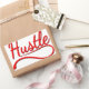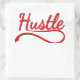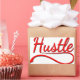 Le mot "hustle" en rouge avec des ombres tombantes en noir. Design original.
