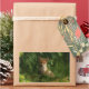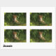 Stickers avec une photo montrant un mignon petit renard à fourrure rouge et blanche. Entouré de feuilles et d'herbes verdoyants.