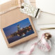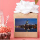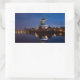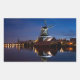 Autocollant photo rectangulaire avec le moulin à vent 'Salamander' avec réflexion dans l'eau de la rivière Vliet avec lumières au début de la nuit dans la ville de Leidschendam dans la Pays-Bas.
