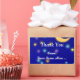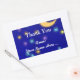 Un autocollant de Merci personnalisé avec script blanc et lettres italiques et l'art vintage élégant d'une lune brillante et étoiles colorées sur un arrière - plan bleu gravé.