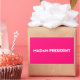 Madame la Présidente, typographie moderne minimaliste Stickers blanc et rose chaud. Texte en gras blanc sur arrière - plan de couleur rose-chaud modifiable. Vous pouvez donc le personnaliser et le rendre unique. Célébrez le président de la nation lors du jour de l'investiture présidentielle. De plus, cela peut être un grand cadeau amusant pour célébrer une femme patronne qui est devenue présidente. Président d'une société internationale, société, d'une petite entreprise, patron, président de votre classe, président étudiant, etc.
