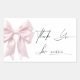 Dites "merci" avec style en utilisant cet élégant autocollant rectangulaire avec un arc rose doux et un script manuscrit. Parfait pour sceller des sacs cadeaux, des enveloppes ou des faveurs de fête avec une touche de sophistication. Une façon charmante de montrer votre gratitude aux baby showers, aux mariages ou à toute occasion spéciale !