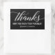 Les autocollants de Merci sont dotés d'un script blanc moderne "merci" du texte et d'un texte personnalisé qui peut être personnalisé avec un message personnalisé et un nom de magasin. Parfait pour mettre en valeur vos ventes. La couleur noire de l'arrière - plan peut être customisée.