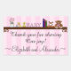Ce sticker "Baby shower Merci" totalement mignon, montre une étagère de pépinière avec des trucs pour bébé dessus ! Livres, ours en peluche, canard en caoutchouc jaune, fleurs dans un bocal de maçon et cheval à bascule sur un arrière - plan rayé rose clair. Personnalisé avec les noms de maman et papa ! "Merci pour partager notre joie" étiquette de faveur baby shower sera belle sur vos cadeaux de faveur invités. Utilisez sur les cartes de remerciement, les enveloppes et les sacs à biscuits. Pour voir les produits correspondants, veuillez visiter mon magasin "La Princesse hongroise" à www.zazzle.com/hungaricanprincess*. Regardez dans ma catégorie de service "Oh Baby". Félicitation !
