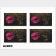 Sticker Rectangulaire Merci - Lèvres roses avec Confetti Or