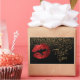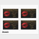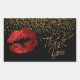 Sticker Rectangulaire Merci - Lèvres rouges avec Confetti Or