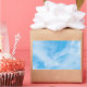 Autocollant rectangulaire modèle vierge nuages blancs nature ciel bleu.
