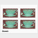 Ces stickers saisonniers de vacances mignons montrent une teacup à l'allure vintage en turquoise avec un sachet de thé tourbillonnant autour et beaucoup de starbursts rétro. Le texte dit, "Prenez une Coupe de Cheer", "du thé pour réchauffer votre coeur et votre joie pour réchauffer votre âme" ainsi que "ce cadeau est envoyé avec amour." Ajoutez votre nom de famille en bas et utilisez ces stickers fantaisistes sur vos cadeaux de Noël. Tout le texte peut être facilement personnalisé sauf le texte rouge en haut.