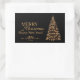 Sticker de Noël de Noël noir moderne est la salutation de vacances simple parfaite. Le design classique moderne comprend des tourbillons fantaisistes et des fleurs fantaisistes avec de l'or magnifique. Personnalisez l'avant de la carte votre nom de famille et l'année.