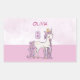 Sticker Rectangulaire Nom personnalisé 8e anniversaire Cheval rose avec