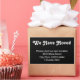 Ce faire-part mobile a un texte blanc que vous pouvez customiser. Cet autocollant noir dit actuellement que Nous avons déménagé S'il vous plaît Visitez notre nouvel emplacement. Des lignes de texte supplémentaires sont disponibles pour votre nouvelle adresse et numéro de téléphone.