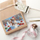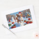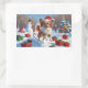 Sticker Rectangulaire Papillon Chien courant dans la neige avec Casquett